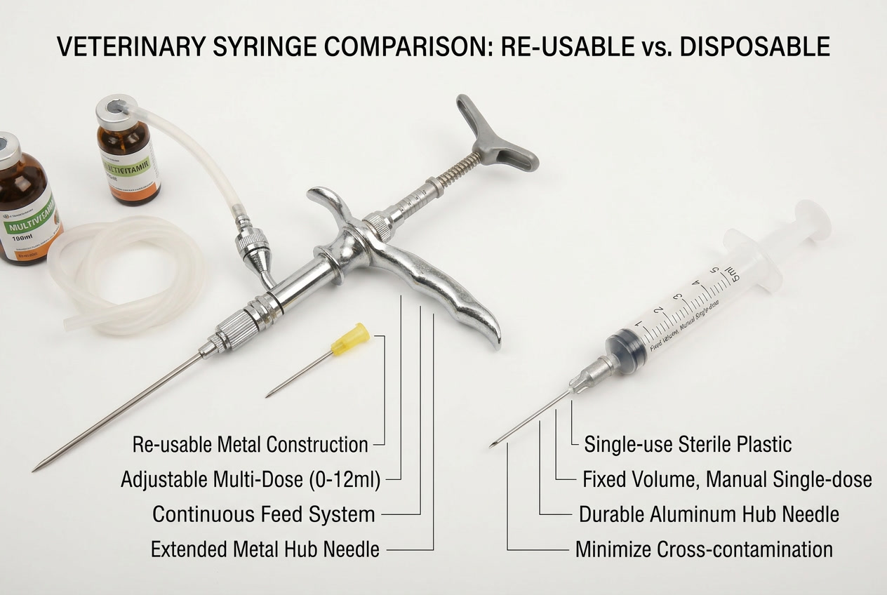 Disposable syringes are ideal for small herds, individual treatments, and situations requiring strict biosecurity.
